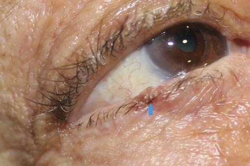 Yvette, 79 ans, se plaint d’une gêne palpébrale lorsqu’elle ferme l’œil droit. Une tuméfaction granuleuse, de couleur rouge-brun, est apparue il y a 1 mois au niveau de la paupière inférieure droite. Une exérèse est réalisée pour analyse histologique.