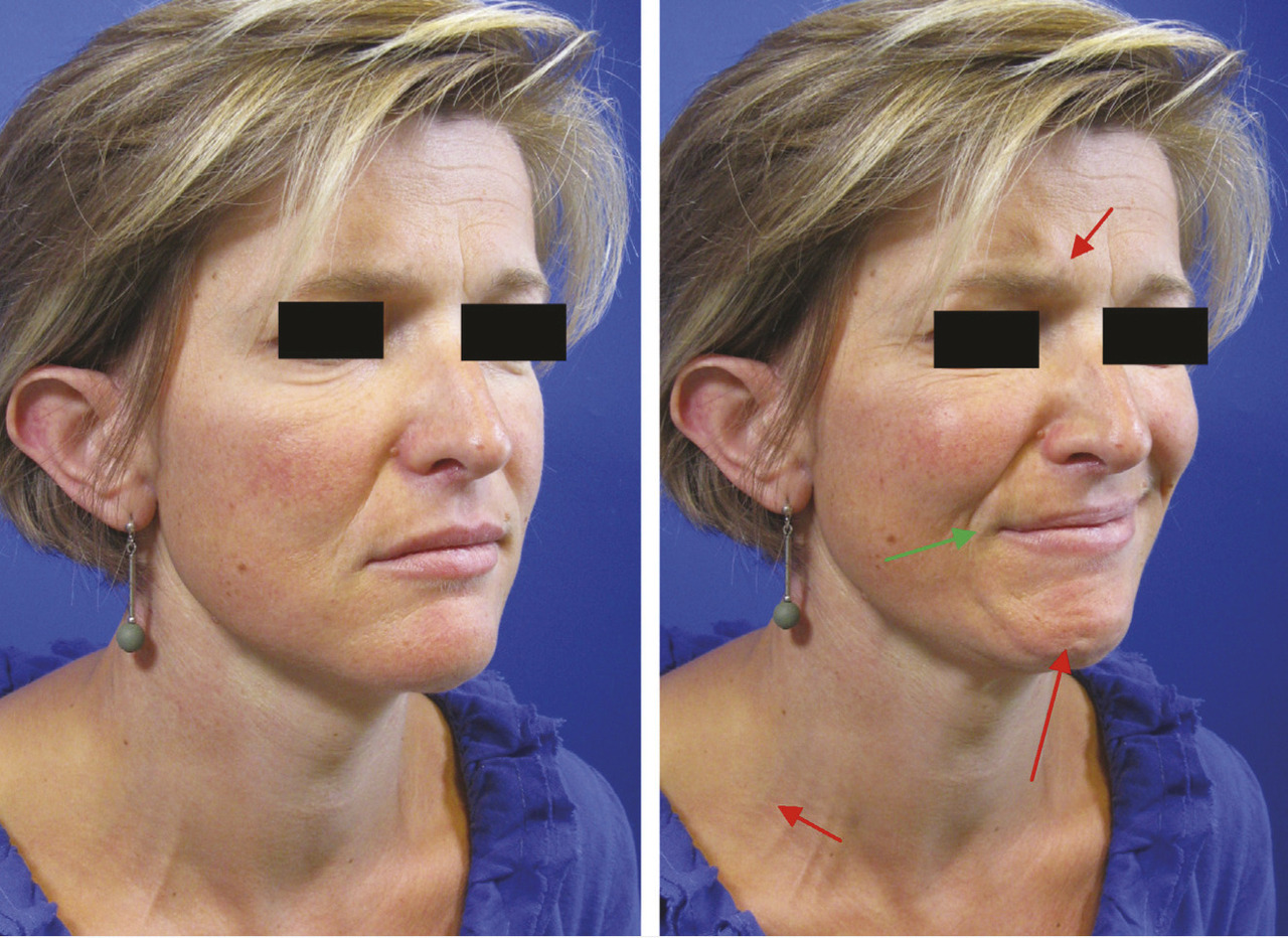 – injectée du côté sain : diminue les contractions musculaires (en cas d’hyperactivité), permettant de symétriser la face et de faciliter le travail de rééducation ;