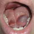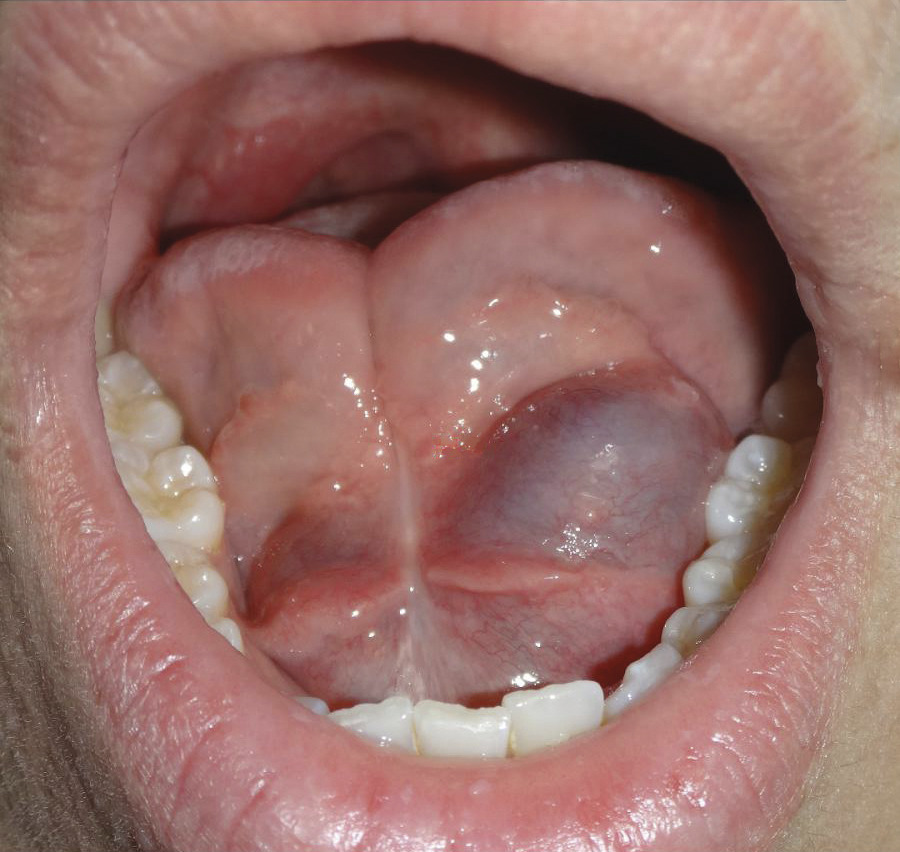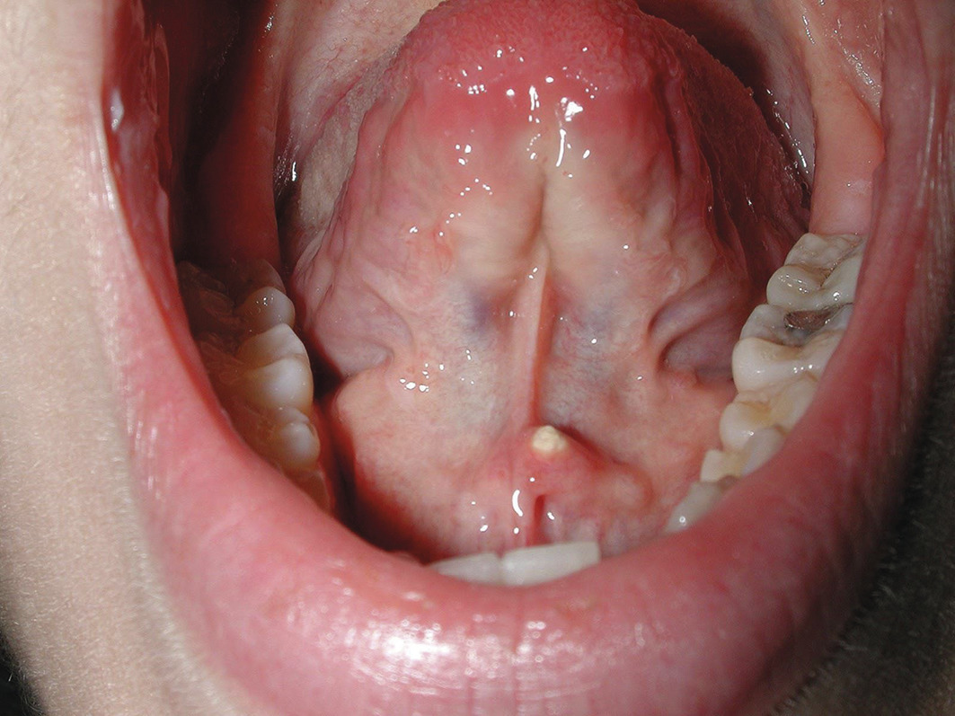 La « grenouillette », ou ranula, est un faux kyste mucoïde (absence de paroi vraie), secondaire à l’obstruction d’un canal excréteur de la glande sublinguale. La grenouillette se manifeste par une tuméfaction bleutée et ovoïde du plancher buccal. La palpation montre une tuméfaction rénitente à contenu liquidien, indolore et isolée. L’évolution se fait par poussées qui sont entrecoupées d’épisodes de fistulisation buccale (écoulement de liquide filant évoquant du blanc d’œuf). La paraclinique est inutile. Le traitement est chirurgical. Il se fait par voie buccale, avec l’exérèse de la grenouillette dans sa totalité mais également exérèse de la glande sublinguale qui lui a donné naissance (fig. 13).