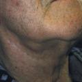 En cas de tumeur maligne, l’évolution peut dans 50 % des cas être d’allure bénigne. L’évolution peut également être d’allure rapide, accompagnée de signes de gravité : douleurs, paralysie faciale (fig. 8), trismus, adénopathie satellite.