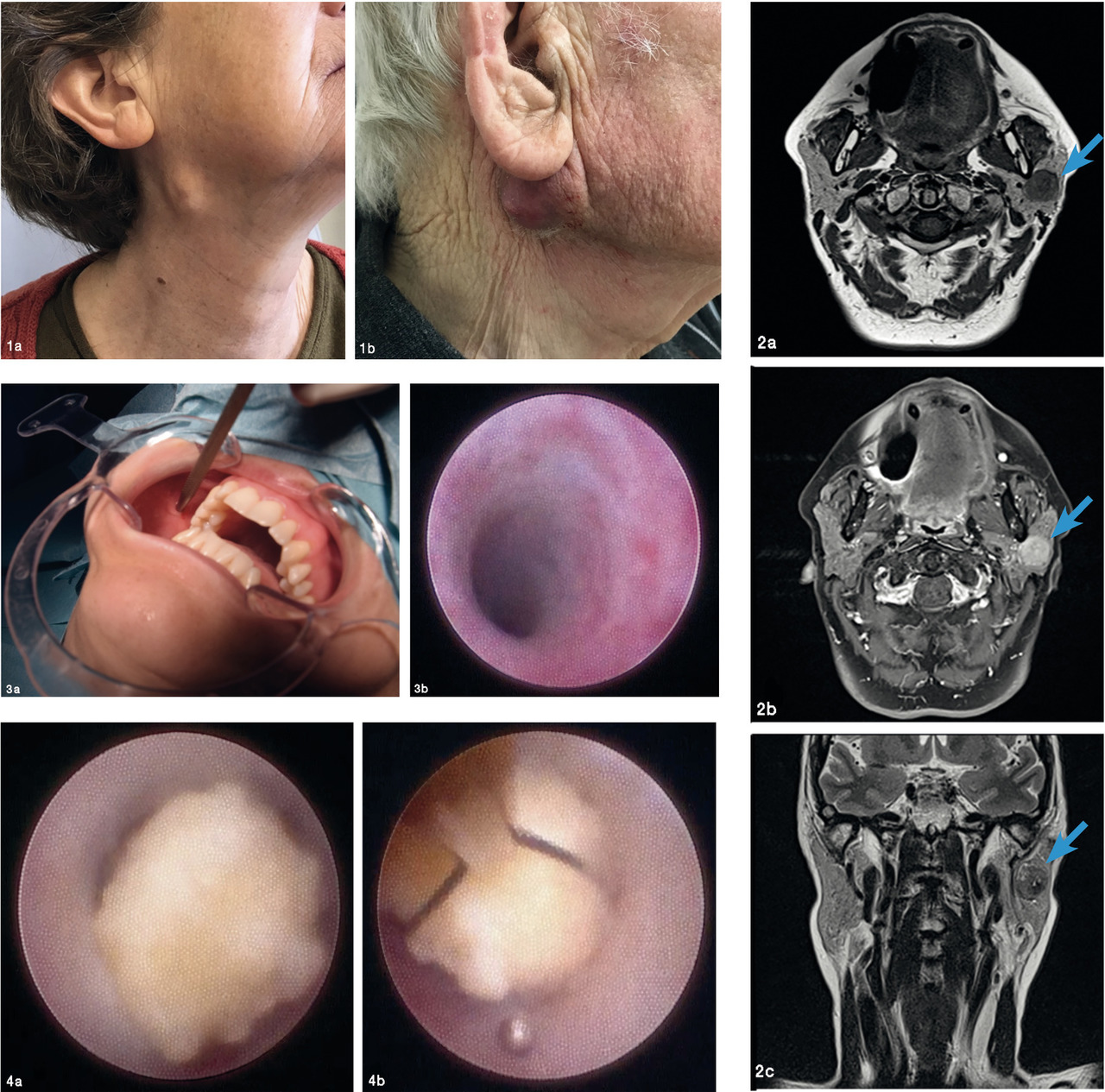 Une paralysie faciale périphérique, une infiltration cutanée, une croissance rapide et/ou une adénomégalie cervicale homolatérale doivent être recherchées à l’examen et sont des critères d’agressivité évoquant un cancer (