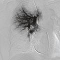 La prise en charge de l’hyper- tension pulmonaire thrombo- embolique chronique dépend de la localisation des séquelles thromboemboliques, proximale ou distale. Deux examens sont utiles à ce stade, l’angio-TDM thoracique (fig. 6) et l’angiographie pulmonaire (fig. 7).