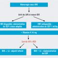 En cas d’hémorragie grave survenant sous AVK, l’objectif est d’obtenir un INR inférieur à 1,5 dans les plus brefs délais. Il est impératif de suspendre le traitement anticoagulant, de mesurer l’INR et d’administrer en urgence un concentré de complexes prothrombiniques (CCP) et 10 mg de vitamine K par voie orale ou intraveineuse lente quel que soit l’INR de départ (fig. 4).2
