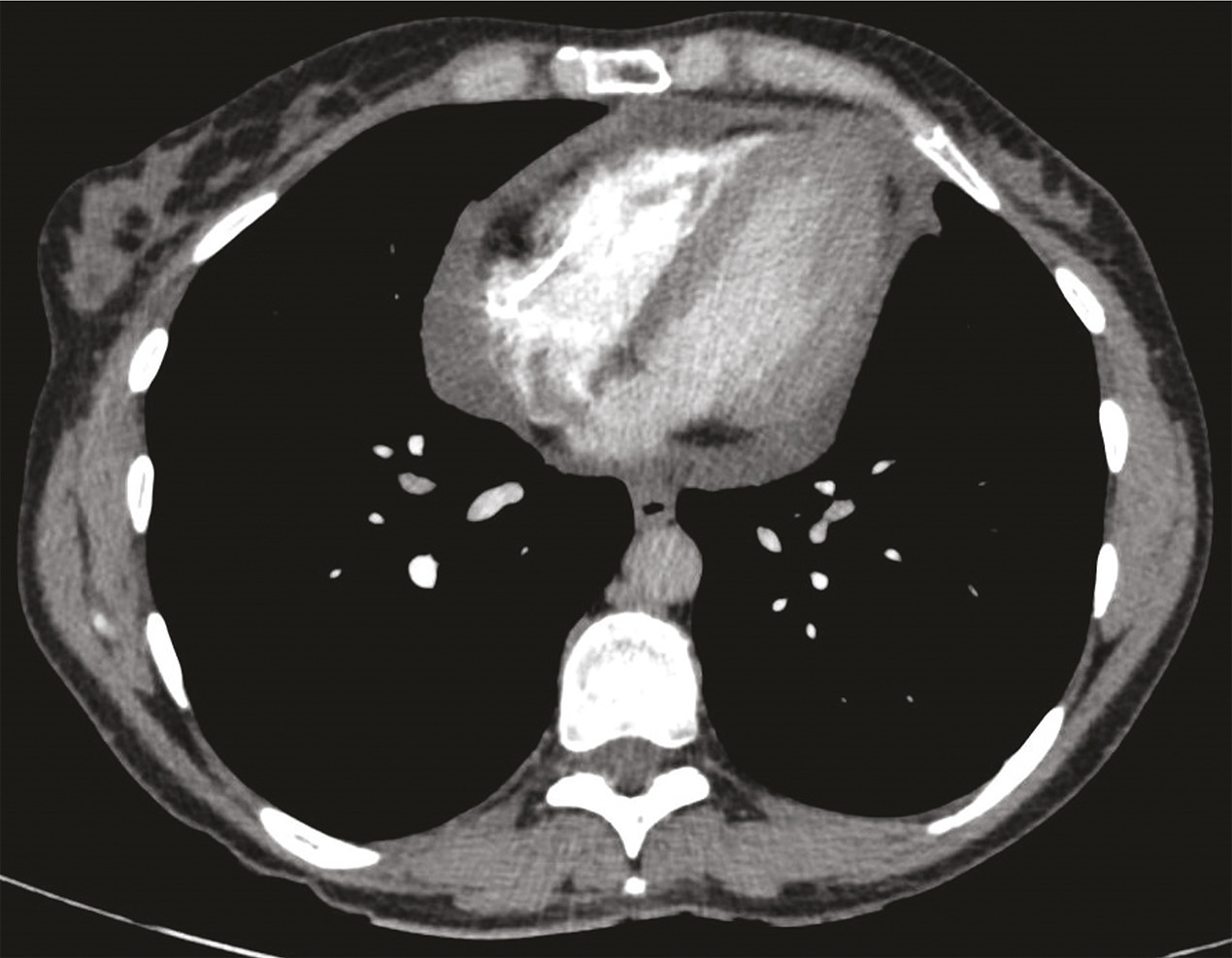 La radiographie de thorax est le plus souvent normale lorsque l’épanchement est modéré. La tomodensitométrie thoracique (