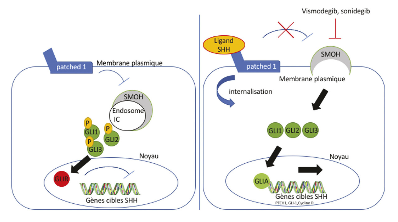 • La voie de signalisation sonic Hedgehog est capitale dans l’oncogenèse des carcinomes basocellulaires.