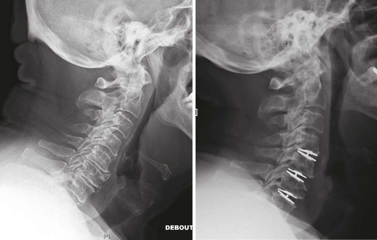 En matière de chirurgie cervicale, l’abord antérieur est préféré à l’abord postérieur car il est beaucoup plus simple et moins traumatisant. Classiquement, une arthrodèse intersomatique complétait la libération. Aujourd’hui, la tendance est à favoriser les arthroplasties discales (