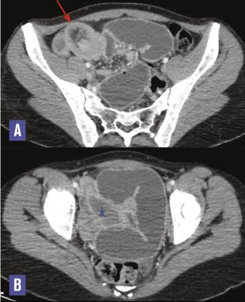L’invagination intestinale aiguë est définie par le télescopage et la pénétration d’un segment intestinal (anse invaginée) dans le segment d’aval (anse réceptrice).1 Son mode évolutif est habituellement subaigu ou chronique. Les formes aiguës, moins fréquentes, sont souvent l’apanage des invaginations entéro-entériques,2 relativement rares chez l’adulte et secondaires dans la majorité des cas. Les formes grêlo-grêliques sont également rares. Une lésion organique est retrouvée dans 80 % des cas chez l’adulte, le plus souvent bénigne au niveau du grêle et maligne au niveau du côlon.2 Les polypes fibroïdes inflammatoires sont des tumeurs bénignes rares du tractus gastro-intestinal qui peuvent se développer à différents endroits du tractus gastro-intestinal ; le segment iléal est le site le plus fréquent où ces polypes provoquent une invagination. L’aspect scannographique de l’invagination intestinale est pathognomonique.3 Le traitement, essentiellement chirurgical, consiste à réséquer l’anse invaginée avec le polype fibroïde inflammatoire.