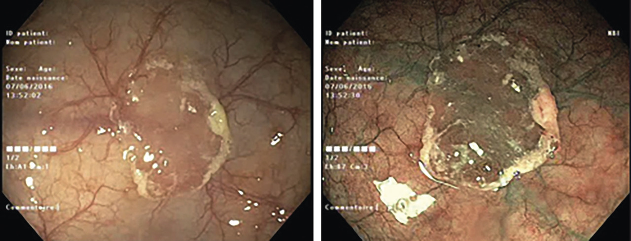 – la détection peut être améliorée par la chromo-endoscopie, la coloration électronique ou l’injection sous-muqueuse d’un liquide coloré.