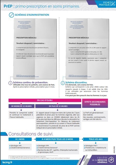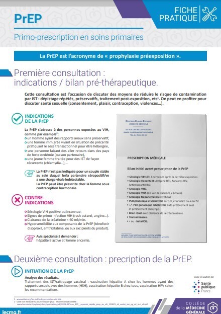 Depuis 2021, tout médecin est autorisé à prescrire une prophylaxie pré-exposition (PrEP) du VIH, outil essentiel pour casser les chaînes de transmission virale. Afin d’accompagner les médecins généralistes dans la primo-prescription de la PrEP, le Collège de la médecine générale (CMG) a élaboré, en collaboration avec Santé publique France, une fiche synthétique. Indispensable pour la pratique !