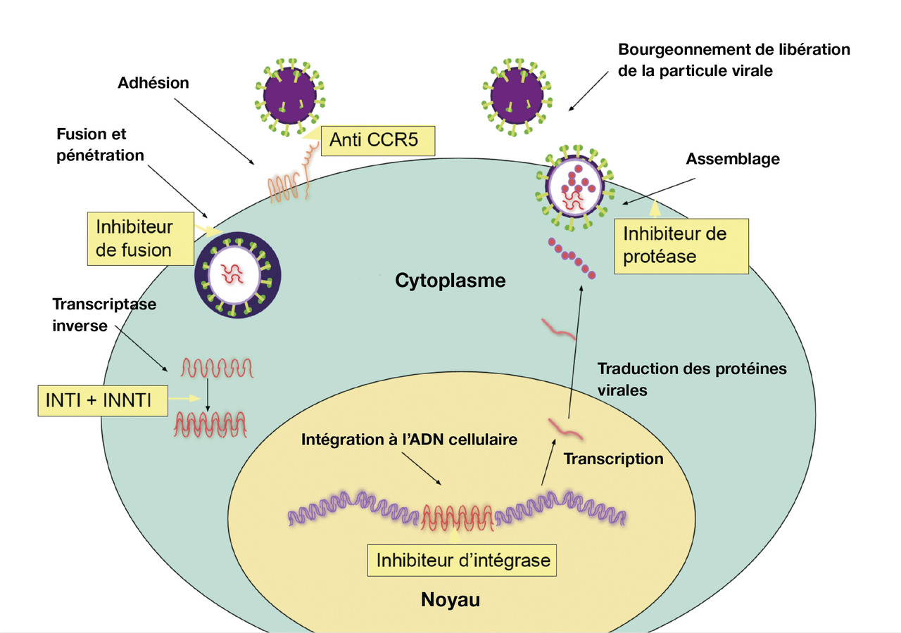 Les antirétroviraux (ARV) inhibent la réplication à différentes étapes du cycle de réplication du VIH (