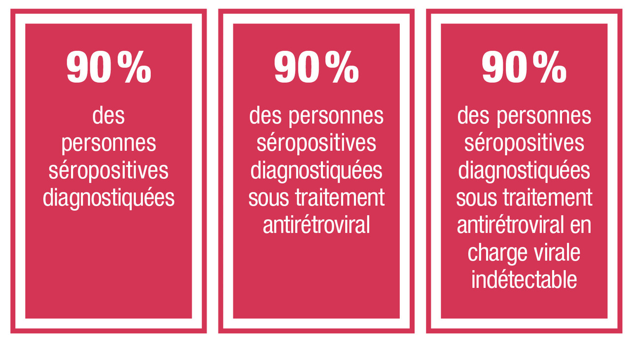 - 90 % de toutes les personnes infectées par le VIH et dépistées reçoivent un traitement antirétroviral ;