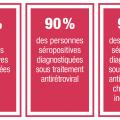 - 90 % des personnes recevant un traitement antirétroviral ont une charge virale durablement supprimée.