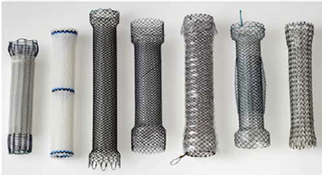 Les prothèses digestives sont des tubes en plastique (polyéthylène ou téflon) ou constitués d’un maillage métallique (Nitinol) visant à restaurer la lumière digestive obstruée. De nombreux modèles existent, avec divers types de couverture (fig. 1 ) pour limiter le risque de migration, principale complication.