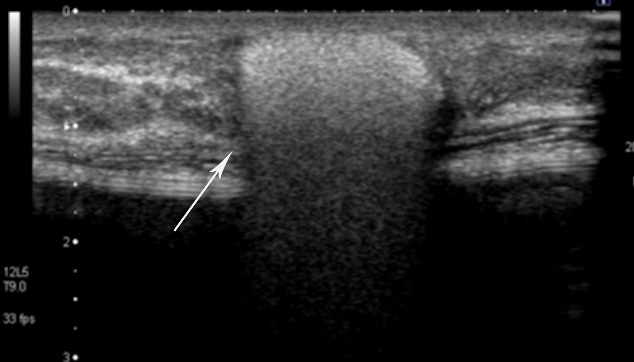 En échographie, impossible de différencier les 2 types : image liquidienne homogène, anéchogène, avec paroi régulière. Parfois des petits plis sont palpables sous la peau.