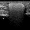 Ganglions siliconiques, pas toujours hypertrophiés : centre hyperéchogène et aspect en « tempête de neige ».3