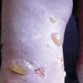 – des soins locaux : toilette antiseptique si surinfection, perçage et assèchement des bulles avec du nitrate d’argent en solution aqueuse, pansements gras ou siliconés sur les érosions (pas de pansements adhésifs en raison de la grande fragilité cutanée).