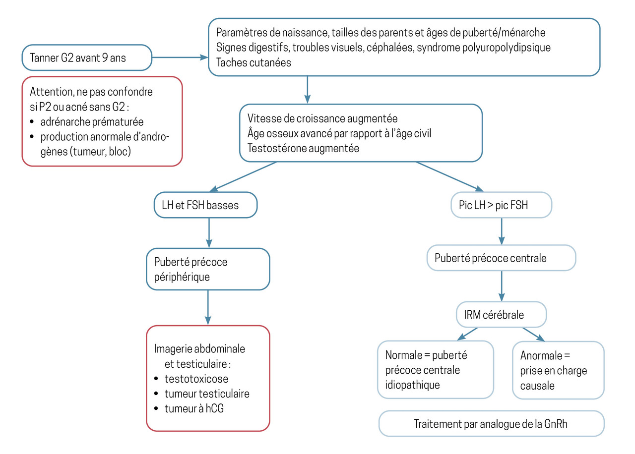 Une démarche précise et approfondie permet de poser le diagnostic de puberté pathologique. On distingue deux entités : la puberté précoce et le retard pubertaire.