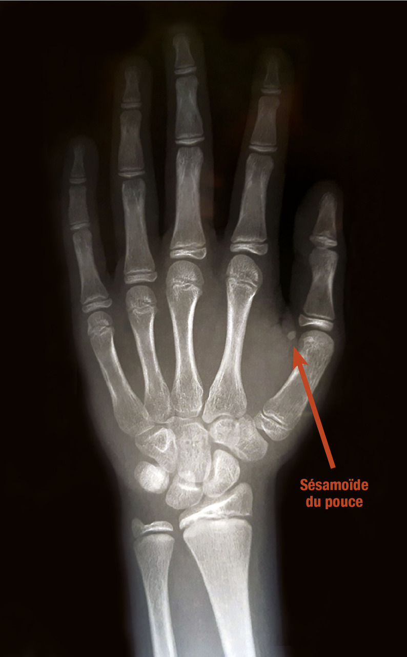 Elle permet d’obtenir un repère quantifiable de la maturation du squelette par les stéroïdes sexuels. Il est lu à l’aide d’un atlas radiologique (Greulich et Pyle), à partir d’une radiographie du poignet et de la main gauche. Le début de la puberté correspond habituellement à un âge osseux de 13 ans chez le garçon et de 11 ans chez la fille. Cet âge osseux correspond grossièrement à l’apparition du sésamoïde du pouce.Examens biologiques