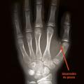 Il doit rechercher les signes évoquant une pathologie acquise (syndrome de Cushing), une dysmorphie. L’examen des organes génitaux externes, des seins et de la pilosité pubienne permettra de quantifier soit l’absence totale, soit un début passé inaperçu, ou encore l’arrêt de la puberté. Le volume et la position des deux testicules sont précisés (en place, ectopiques, ou non palpables de façon uni- ou bilatérale, cryptorchidie). Enfin, la présence d’une anosmie (incapacité à sentir les odeurs) permet d’évoquer, sur la seule clinique, le diagnostic rare d’hypogonadisme hypogonadotrope par syndrome de Kallmann-de Morsier.Détermination de l’âge osseux (fig. 4)