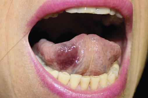 Michèle, 67 ans, est traitée depuis plus de 20 ans par du méthotrexate pour une polyarthrite rhumatoïde. Elle consulte à la suite de l’apparition d’une lésion linguale violacée qu’elle attribue à son traitement. Elle n’a pas effectué les bilans biologiques de suivi demandés par le rhumatologue. La prise de sang met en évidence une thrombopénie à 42 000 plaquettes/mm3 accompagnée d’une légère leucopénie.