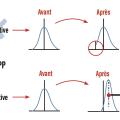 Les courbes de la partie haute de la figure ci-contre représentent ce qui pourrait résulter si l’on appliquait à une évaluation des pratiques médicales une procédure d’« assurance qualité ». Selon cette procédure d’inspiration normative, le contrôle y intervient a posteriori et consiste à rechercher les anomalies ou les incidents de pratique de manière à les éliminer. Le résultat est évidemment de portée limitée : seuls les anomalies et les incidents les plus manifestes peuvent être identifiés, et le cas échéant corrigés. Une fois les corrections faites, la qualité moyenne ne progresse que faiblement, comme le montre la figure.