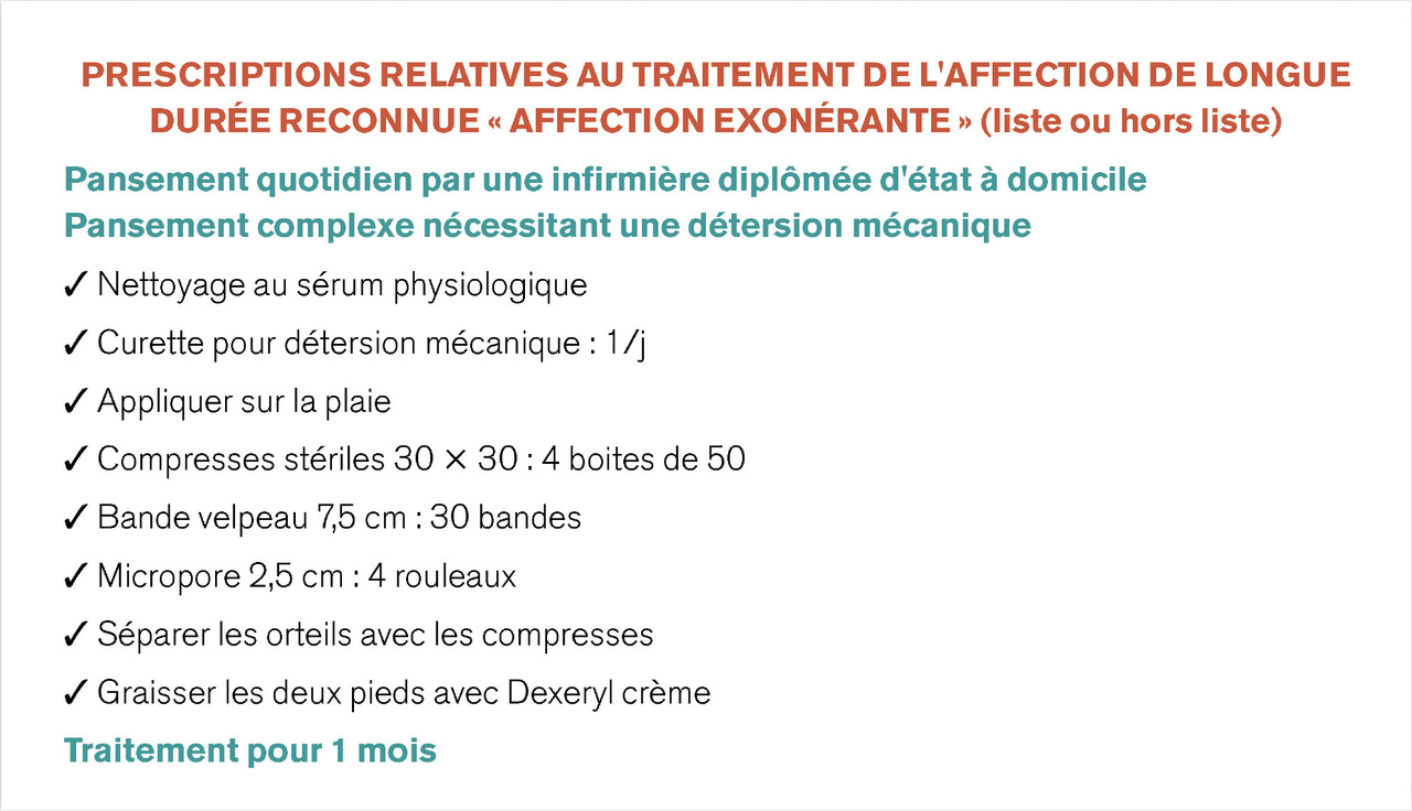 Le passage d’un(e) infirmier(ère) à domicile permet de surveiller la plaie, de veiller à ce que le patient utilise bien sa chaussure de décharge, et de faire des soins locaux (fig. 2 ).