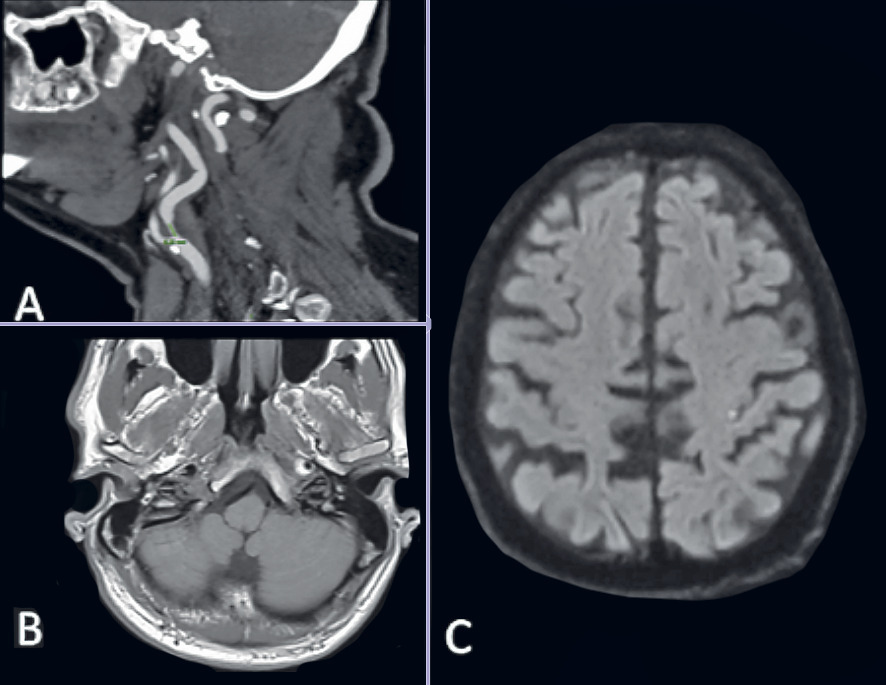 Une maladie des petites artères cérébrales concerne près de 20 % des patients. Cette dernière est identifiée par les caractéristiques de la lésion cérébrale (lacunaire et située dans un territoire profond) et l’analyse du parenchyme sous-jacent sur l’IRM cérébrale (leucopathie vasculaire).