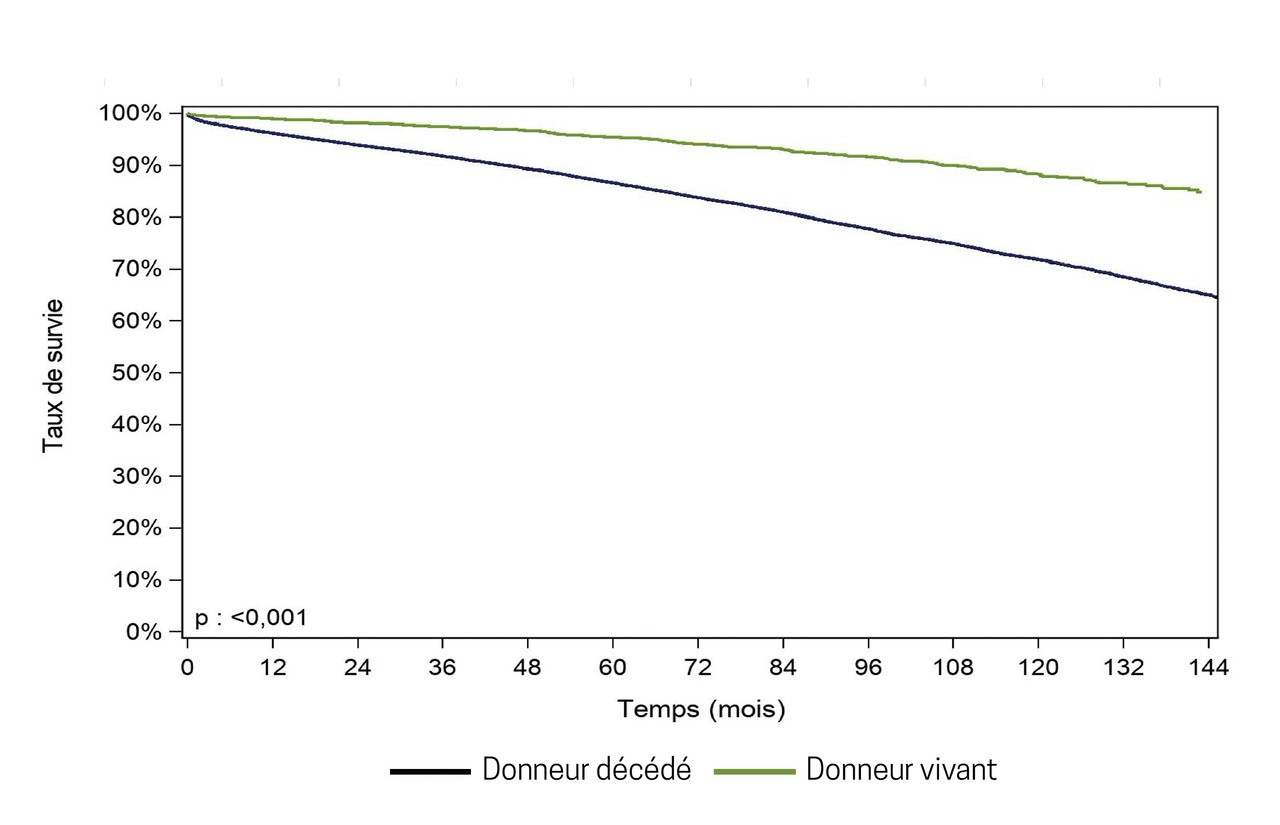 Selon une étude publiée dans le New England Journal of Medicine, la survie du greffon rénal et du patient transplanté rénal s’est améliorée dans le temps, malgré la part croissante de donneurs plus âgés, ou à cœur arrêté, et malgré le moins bon profil des receveurs (plus âgés, avec un index de masse corporelle plus élevé, plus immunisés contre les antigènes HLA, plus fréquemment diabétiques et dialysés depuis plus longtemps).7