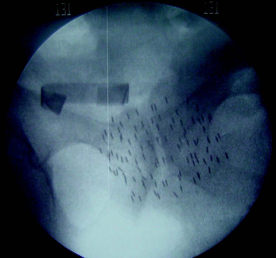 Classiquement, l’iode 125 était utilisé sous forme de grains, ceux-ci restant définitivement dans la glande, mais perdant leur radioactivité entre 4 et 6 mois.