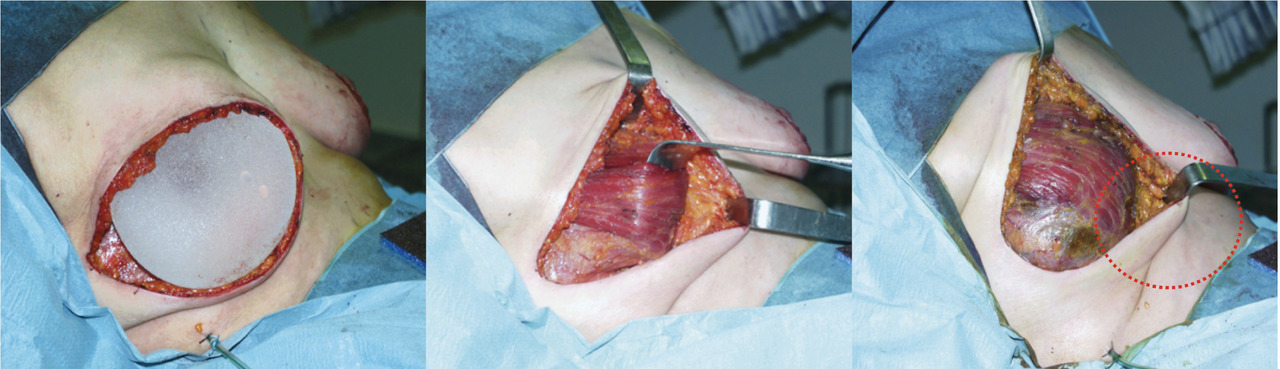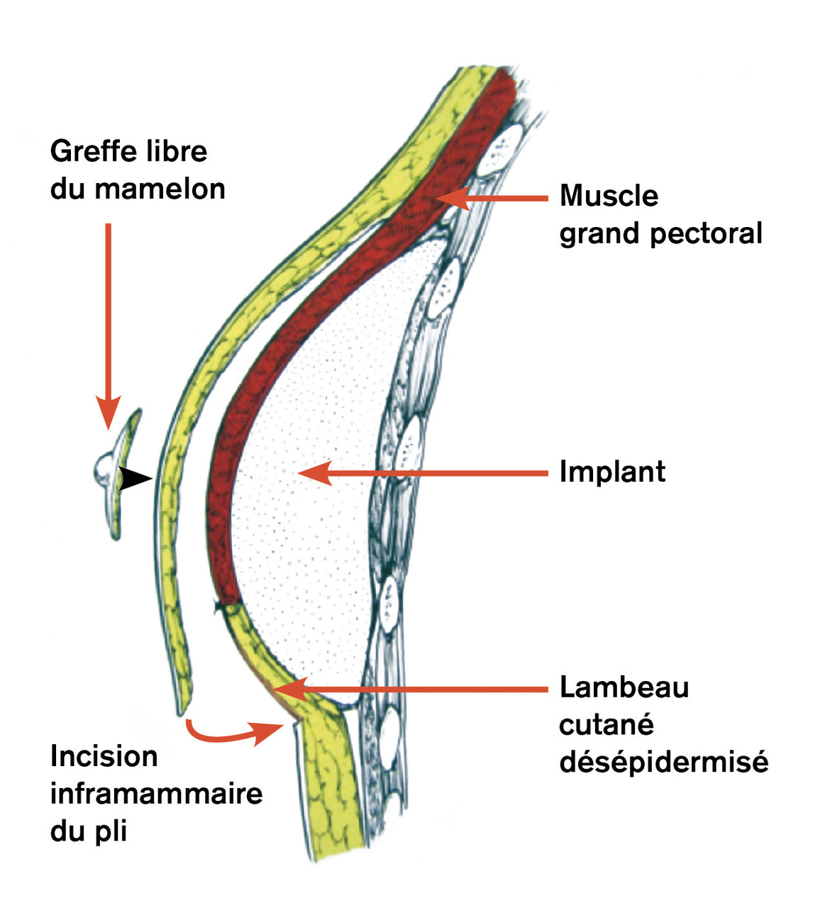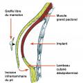 Le dogme était d’obtenir une couverture musculaire complète de l’implant. Cela nécessitait parfois de mettre en place une prothèse d’expansion en arrière du muscle pectoral et du fascia sous-pectoral. La partie inféro-externe du volume reconstruit par la prothèse pouvant ne pas être recouverte par du tissu souple alors qu’elle correspond à la projection maximale du sein reconstruit. L’expansion progressive permettait de créer une loge prothétique, la prothèse d’expansion était ensuite remplacée par l’implant définitif.