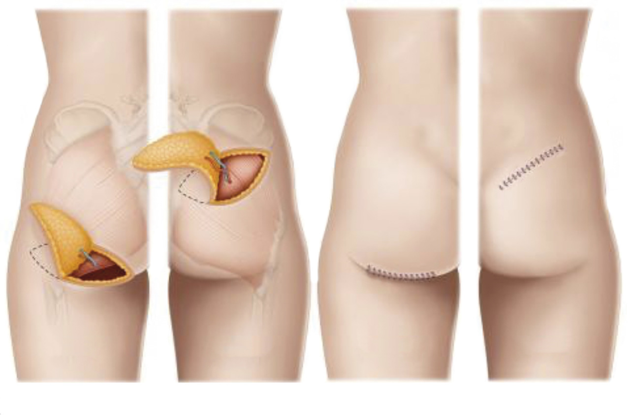 Devant le succès du DIEP, d’autres lambeaux perforants ont été décrits, notamment les lambeaux fessiers (fig. 2) et de la face interne de la cuisse (gracilis), qui permettent ainsi de s’adapter à la morphologie de chaque patiente.