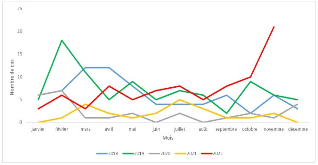 - les formes pleuropulmonaires, dont aucun cas n’avait été rapporté en 2021, représentent 24 % des cas en 2022.