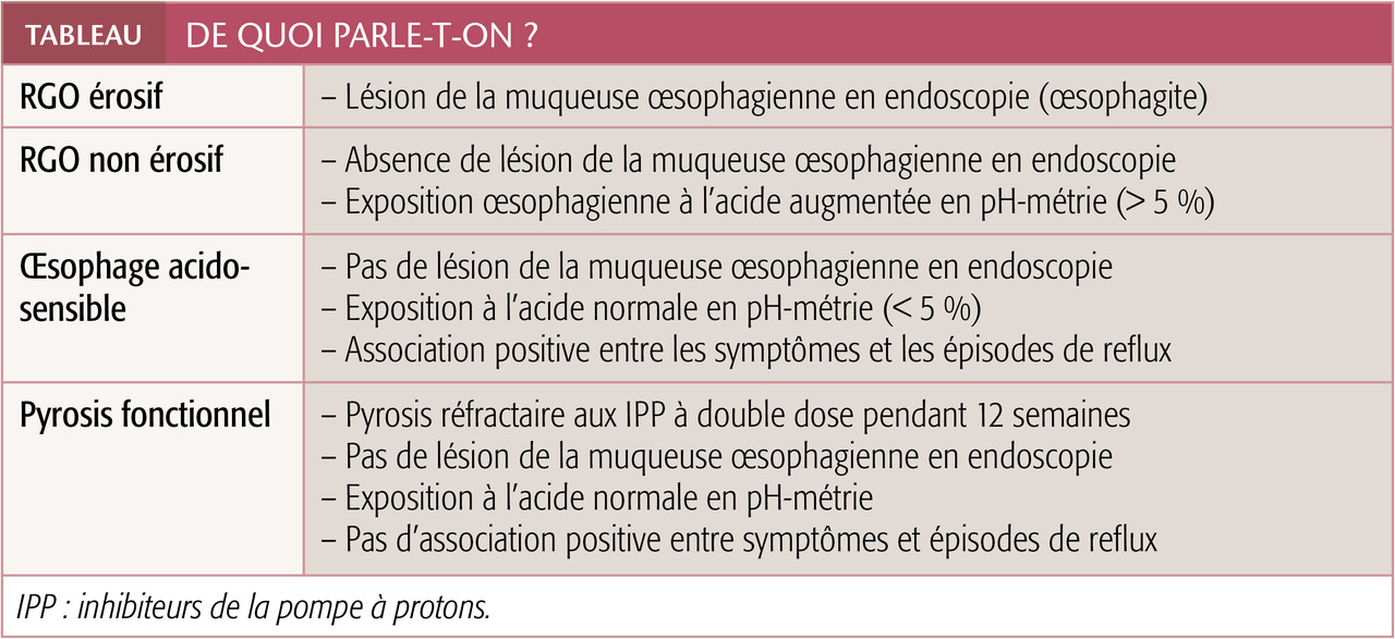 Ainsi, chez la majorité des patients, les troubles qui perdurent sous IPP ne sont pas en rapport avec un reflux persistant, ce d’autant plus qu’ils sont atypiques ou extra-œsophagiens (ORL par exemple). Ils sont volontiers fonctionnels : dyspepsie ou pyrosis fonctionnels, manifestations d’hypersensibilité pharyngolaryngée.