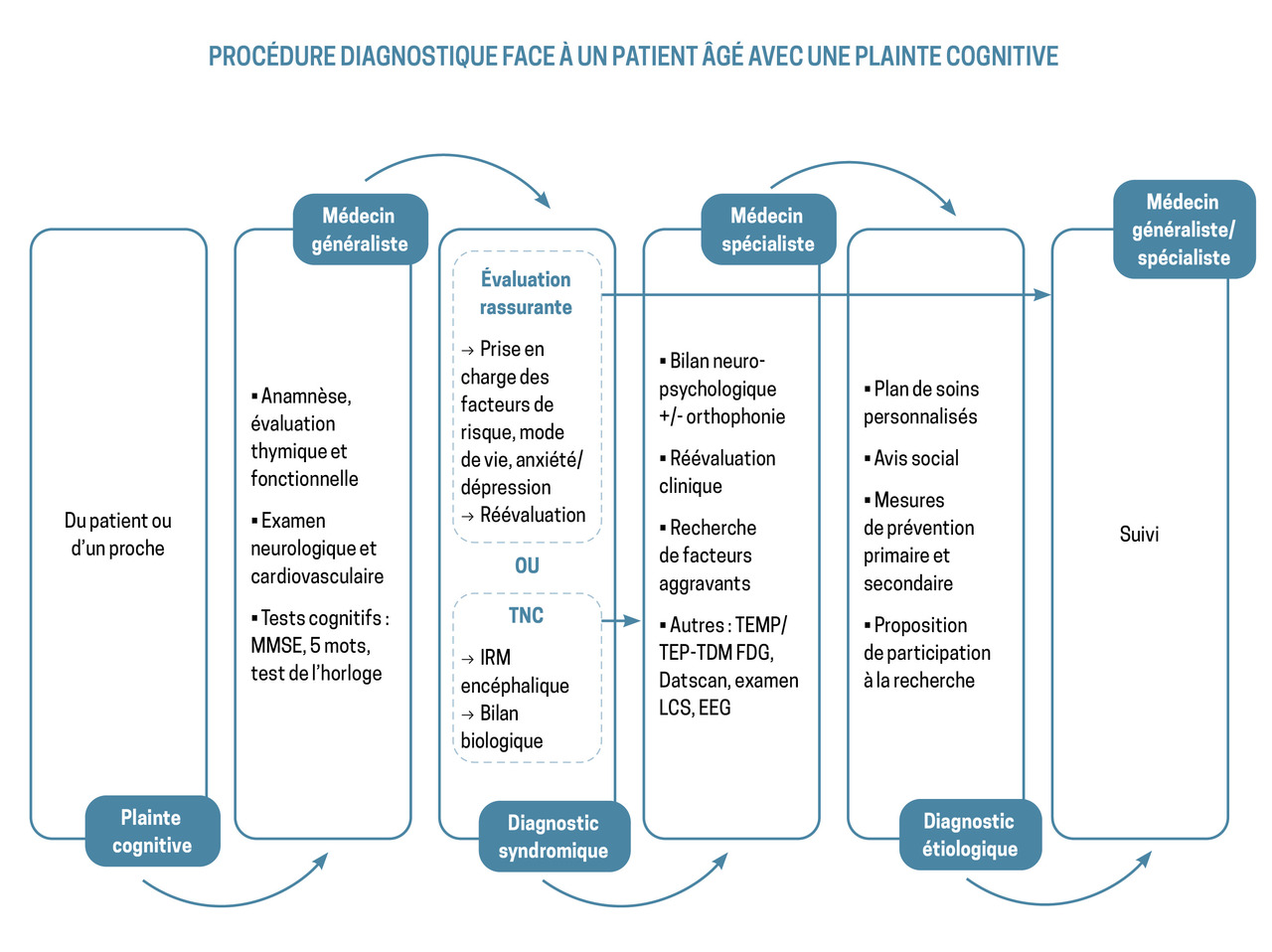 Une stratégie diagnostique dite « graduée et personnalisée » a été proposée sous l’égide du Collège de la médecine générale et des spécialistes des TNC.3