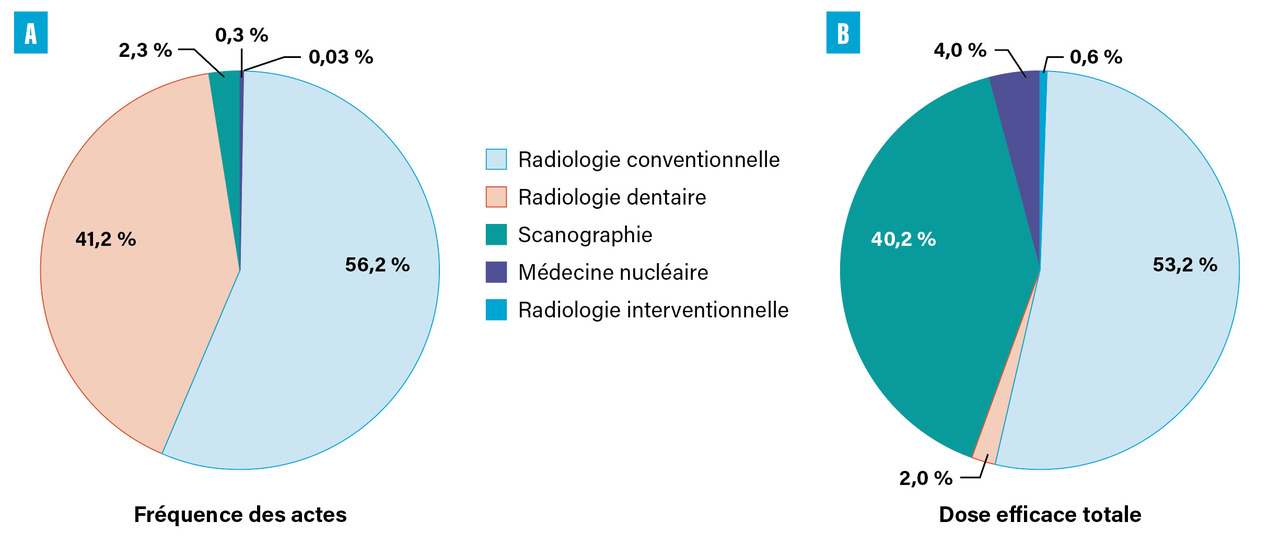Les actes les plus fréquents chez les enfants concernaient très majoritairement la radiologie conventionnelle et dentaire (environ 56 % et 41 %, respectivement). La dose efficace collective, c’est-à-dire la somme des doses efficaces de l’ensemble des examens des enfants de l’échantillon pour l’année 2015, était très majoritairement due à la radiologie conventionnelle et à la scanographie (environ 53 % et 40 %, respectivement,