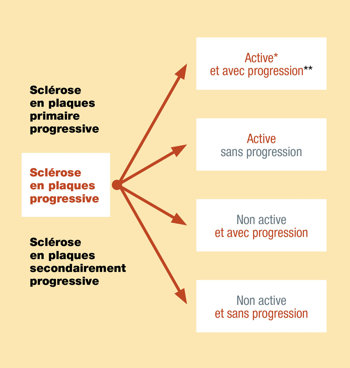 Il convient de préciser pour les patients atteints de sclérose en plaques progressive, qu’elle soit primaire progressive ou qu’elle soit secondairement progressive, la notion d’activité (clinique et/ou radiologique) et de progression (