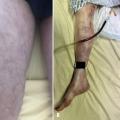 - les marbrures (fig. A), essentiellement aux membres inférieurs. Leur extension est corrélée au taux de lactate et à la sévérité du sepsis ;