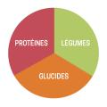 - d’un plat principal dont la proportion de féculents représente la moitié de l’assiette.