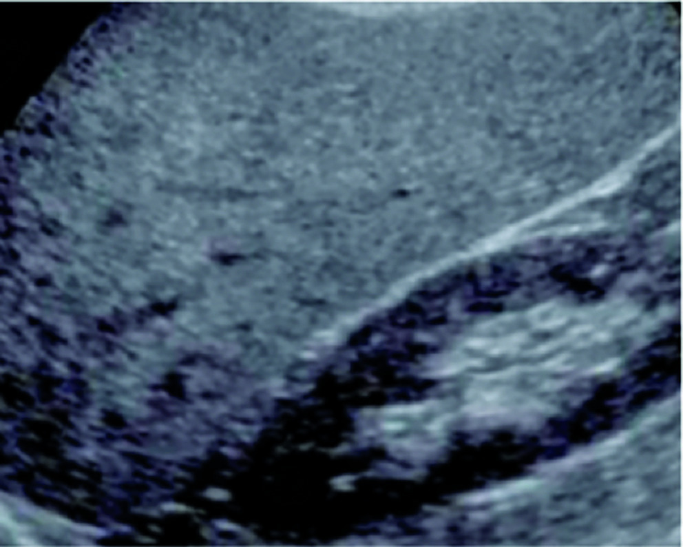 – échographie abdominale : aspect hyperéchogène (quand au moins 30 % des hépatocytes sont stéatosiques). Sa sensibilité est de 80 % et sa spécificité est supérieure à 90 % (pas de supériorité du scanner) ;