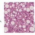 Appelée prosaïquement « foie gras », elle est due à l’accumulation de triglycérides hépatocytaires. C’est la complication hépatique du syndrome métabolique : insulinorésistance (ou diabète), HTA, hypertriglycéridémie, cholestérol HDL bas et excès de graisse viscérale.