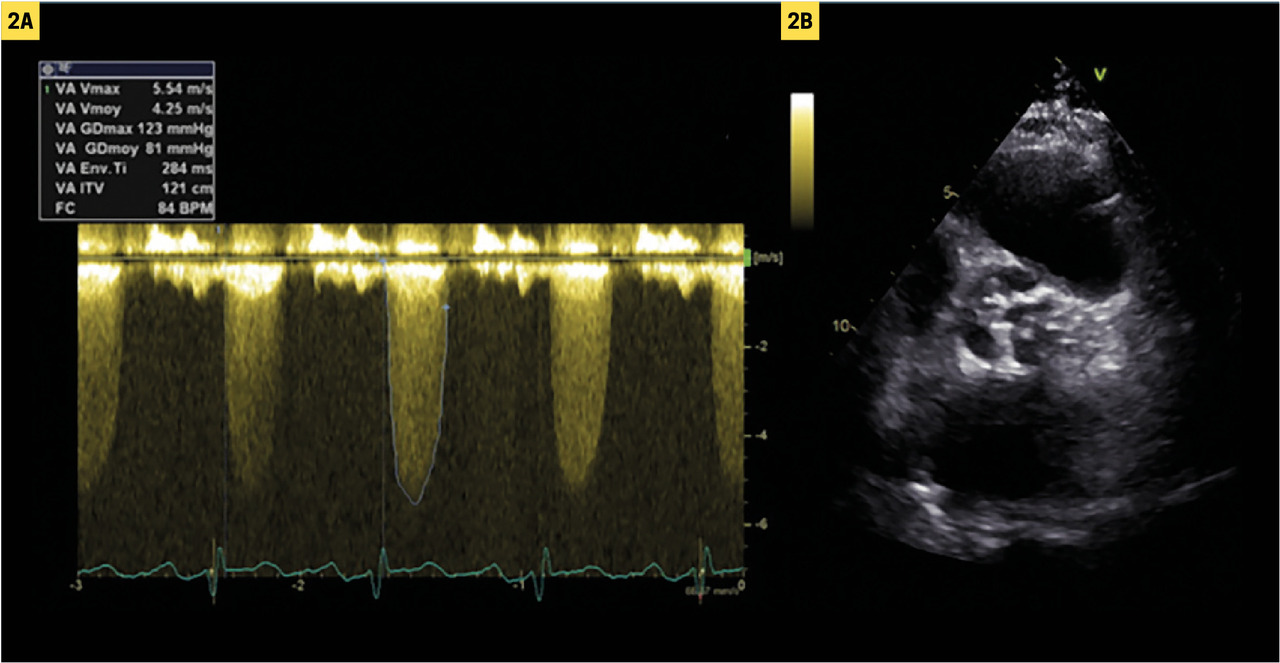 En revanche, chez les sujets dont le débit est soit trop élevé (anémie ou fistule artério-veineuse chez un patient hémodialysé par exemple), soit trop bas (altération de la fonction systolique du VG), vitesses et gradients transvalvulaires peuvent être respectivement sur- ou sous-estimés. La mesure de la surface fonctionnelle valvulaire (équation de continuité) en écho-doppler cardiaque est alors utile : si elle est > 1 cm² chez un patient dont le débit cardiaque est normal ou élevé, on peut considérer qu’il s’agit d’une sténose modérée (serrée si < 1 cm2). à l’inverse, en cas de débit bas ou normal, si la surface est ≤ 1 cm2 malgré des gradients et des vitesses transvalvulaires n’atteignant pas les seuils de sévérité (en pratique 20 % des patients avec sténose serrée sur le critère de surface), d’autres examens sont souvent nécessaires pour affirmer la gravité (échocardiographie sous faibles doses de dobutamine, mesure du score calcique valvulaire par scanner, cathétérisme cardiaque). Cette évaluation complexe est réalisée dans un centre expert en valvulopathies (Heart Valve Center), selon les recommandations européennes.3