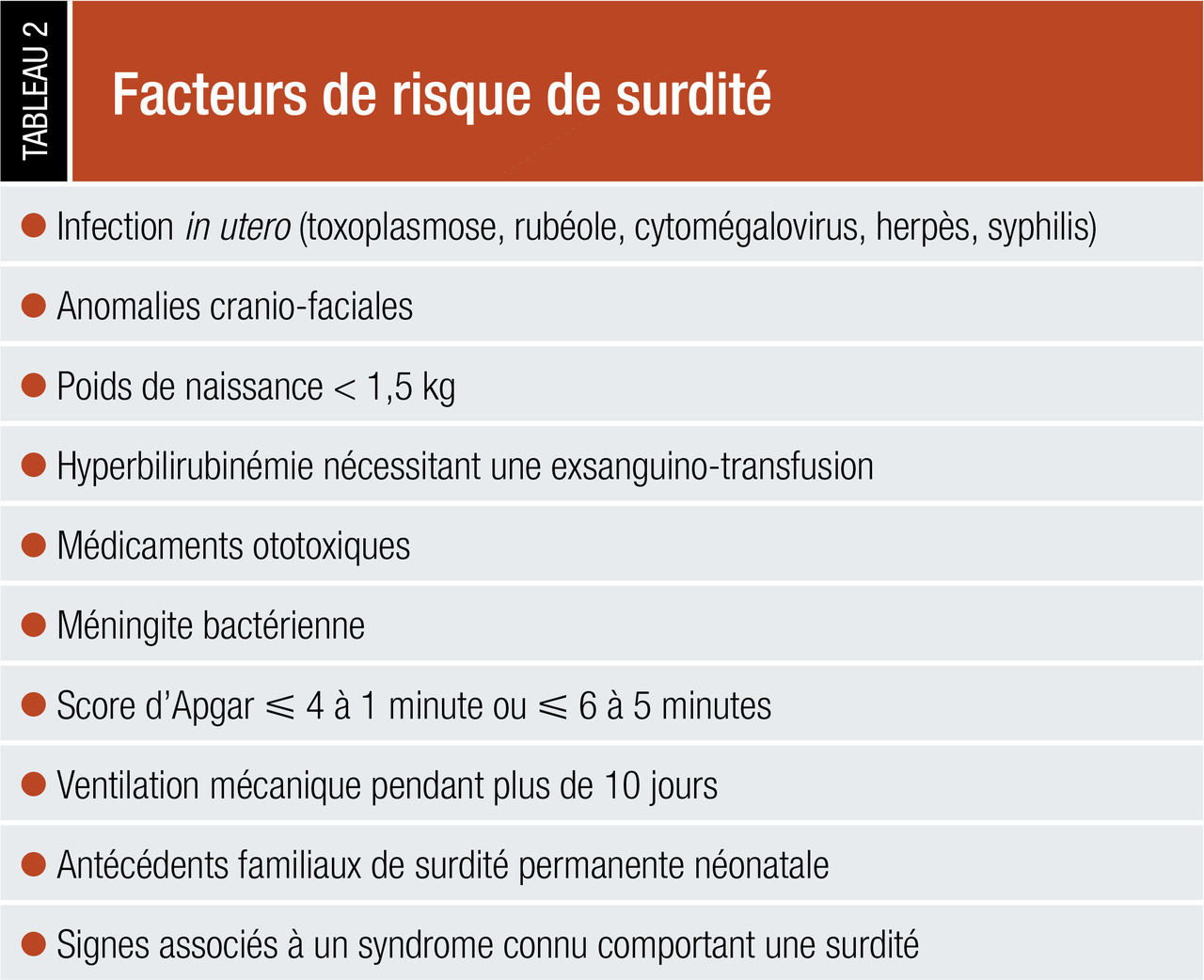 - période néonatale : réponse comportementale au bruit, oto-émissions acoustiques ;