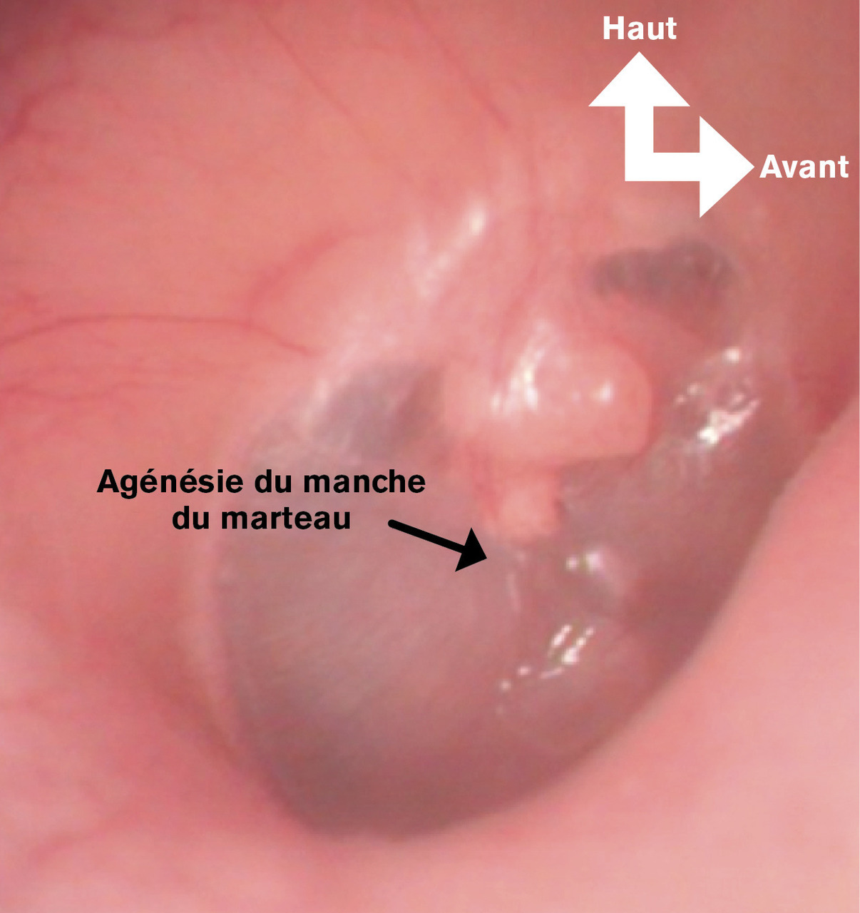 L’aplasie mineure entraîne une surdité de transmission à tympan normal liée à une anomalie de la chaîne ossiculaire, anomalies qui peuvent être multiples (fig. 5 ).