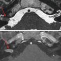 Si doute diagnostique surtout en postopératoire, l’IRM fait la distinction en cas de comblement, entre éventuel cholestéatome et rétention ou fibrose inflammatoire associée.