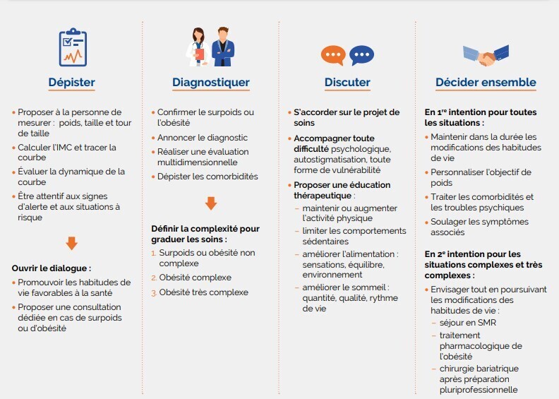 Pour en savoir plus : Surpoids et obésité de l’adulte. Infographie parcours de soins personnalisé