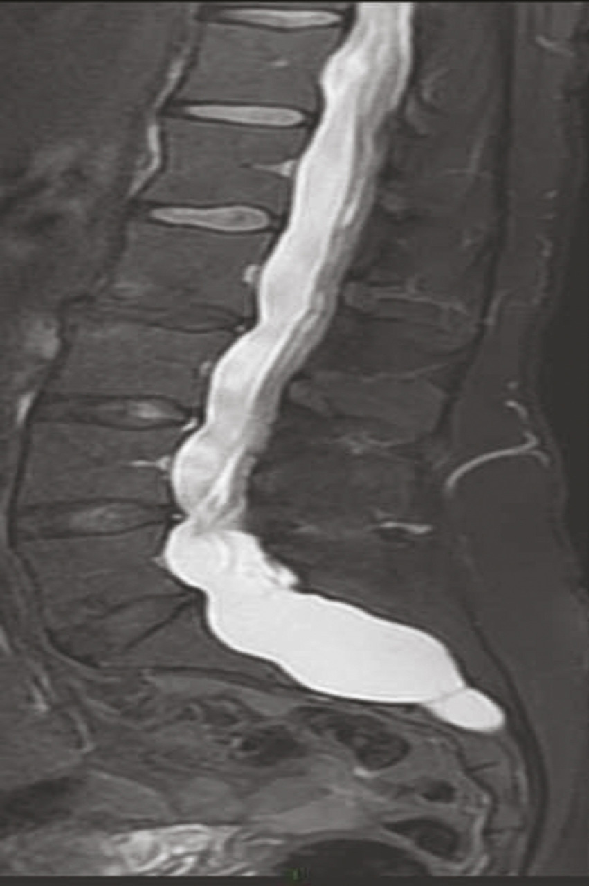 Les vertèbres peuvent être déformées par une ectasie du sac dural (fig. 3 ), visible essentiellement à la tomodensitométrie ou à l’imagerie par résonance magnétique (IRM). Les symptômes associés à cette ectasie durale restent mal connus. Elle peut être associée à des céphalées en rapport avec une hypotension du liquide céphalorachidien dont la symptomatologie est proche du syndrome post-ponction lombaire.