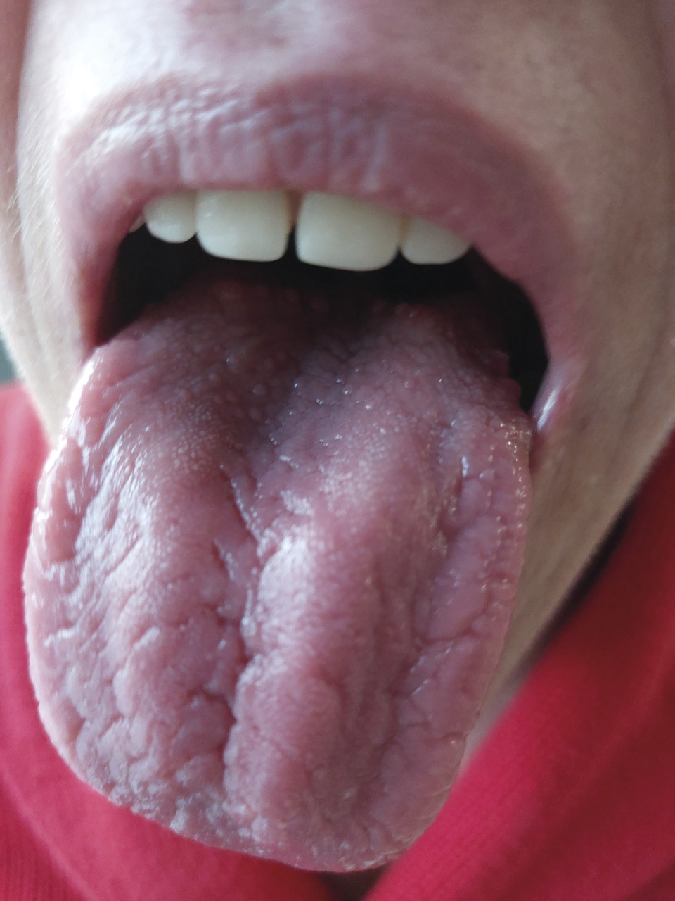 Les multiples épisodes de paralysies faciales périphériques, langue plicaturée et œdème orofacial orientent vers un syndrome de Melkersson-Rosenthal.