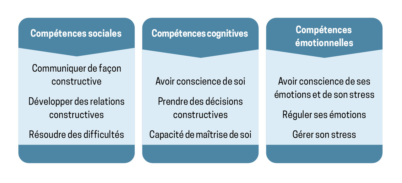 Des programmes validés de prévention des conduites addictives en milieu scolaire sont développés – Unplugged en est un exemple –,7 visant surtout à développer les compétences psychosociales chez les enfants (figure). Ils sont animés par les jeunes eux-mêmes dans leurs collèges ou quartiers, lors d’événements festifs et sportifs, dans le cadre de forums d’information et de sensibilisation aux addictions, avec des formats ludiques. Par ailleurs, il est nécessaire de montrer à ces jeunes la façon dont ils sont manipulés par les stratégiesmarketing des industriels du tabac.
