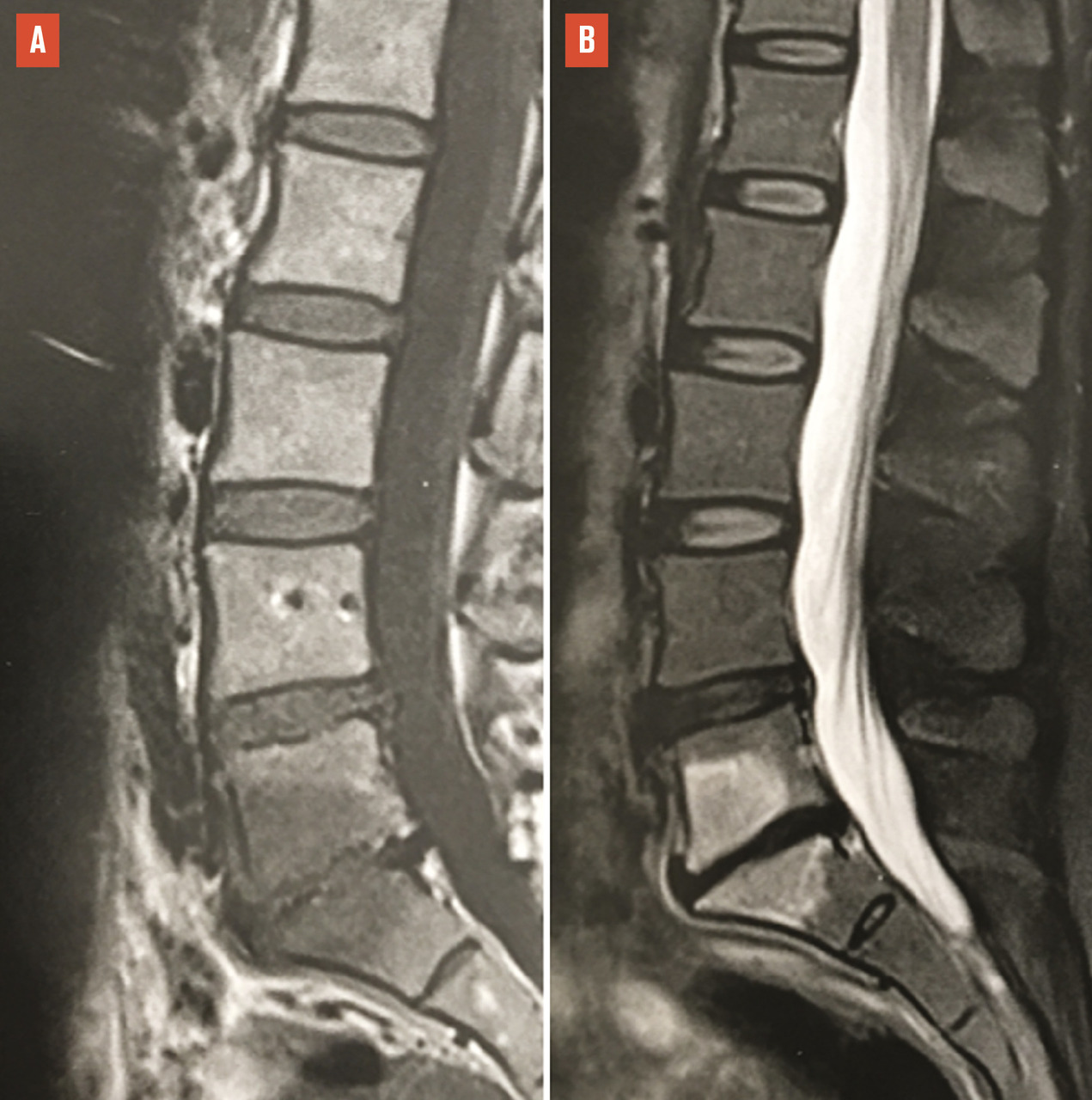 À ce jour, l’efficacité de ces deux techniques sur les douleurs fracturaires n’est pas scientifiquement démontrée. Deux essais multicentriques contrôlés en double insu, publiés en 2009, ont comparé la vertébroplastie percutanée et une procédure de vertébroplastie factice, sans montrer de supériorité de la vertébroplastie sur la douleur.26, 27 Une première explication à cela tient à la difficulté de démontrer l’efficacité sur la douleur d’une technique chirurgicale, en la comparant à une intervention factice, connaissant l’importance de l’effet placebo. Ces deux essais contrôlés comportent aussi un certain nombre de limites méthodologiques : la proportion importante de patients ayant des douleurs depuis plus de 3 mois (après ce délai, la responsabilité d’une fracture dans les dorsalgies devient très incertaine), l’abord unipédiculaire, la faible quantité de ciment injectée, l’absence de groupe contrôle de fractures pris en charge médicalement, le faible seuil minimal d’évaluation de la douleur (EVA) requis comme critère d’inclusion, qui n’était que de 327 ou 4/1026, ce qui ne favorise pas la mise en évidence d’un effet thérapeutique. Enfin, et surtout, la présence d’un signal d’œdème médullaire en IRM, critère majeur de définition du caractère récent d’une fracture vertébrale ostéoporotique et de sa responsabilité dans les douleurs vertébrales, n’était pas systématiquement requis.