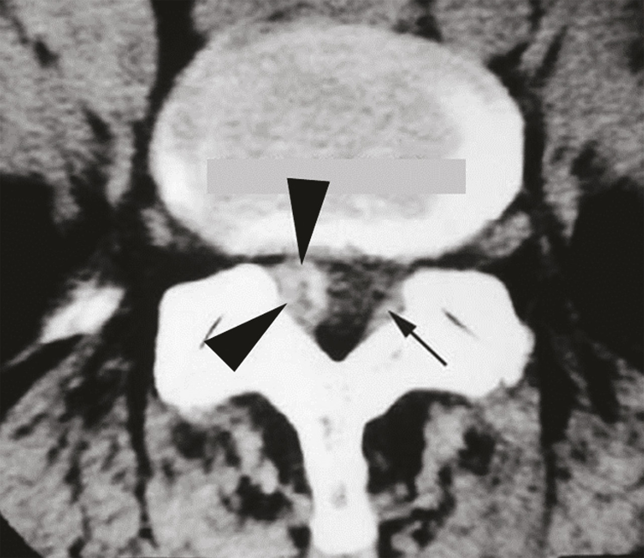 La symptomatologie du canal lombaire rétréci apparaît quand le sac dural est réduit de plus de deux tiers, autrement dit quand il ne reste plus suffisamment d’espace pour les racines de la queue de cheval (qui n’occupent en moyenne qu’un tiers du sac dural sur une tranche axiale, le reste de l’espace étant occupé par le liquide cérébrospinal).